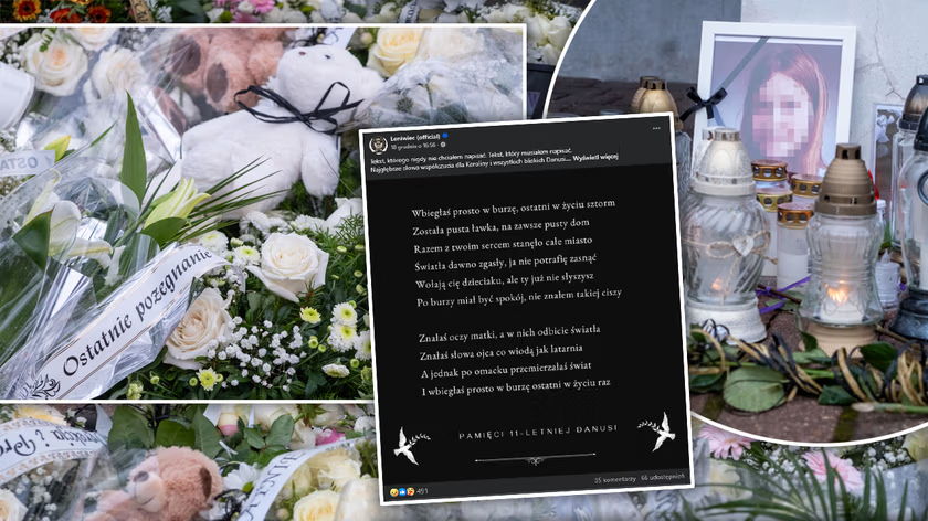 Zespół muzyczny Leniwiec z Jeleniej Góry napisał przejmujący tekst, by uczcić pamięć tragicznie zmarłej 11-letniej Danusi. Słowa, opublikowane w mediach społecznościowych, poruszyły internautów. W komentarzach nie brakuje wyrazów współczucia i smutku. Tragedia, która rozegrała się w pobliżu szkoły podstawowej, wstrząsnęła całą lokalną społecznością.